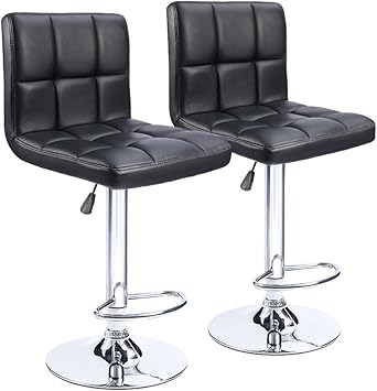 Homall modern pu leather adjustable swivel barstools, armless hydraulic kitchen counter bar stools synthetic leather extra height square island bar stool with back set of 2(black).