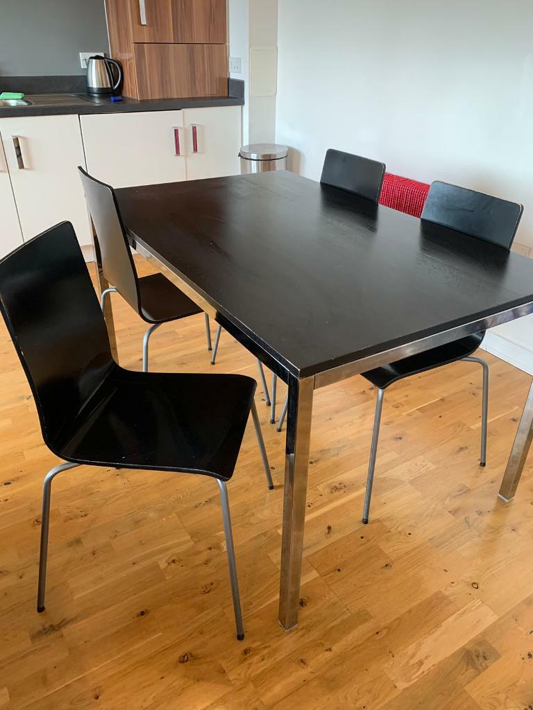Kitchen table (with extension) and 4 chairs in good conditions. Vipek metal bar table chair set 41.5 h square dining table & 4pcs 30 h barstool dining stool bar chairs w solid wood top bistro pub patio cafe restaurant home kitchen, gloss black. Black glass coffee table with metal legs for sale in good condition with some minor scratches. Edinburgh's defining feature is its legs.